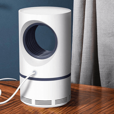 Cet appareil attire les moustiques grâce à une lampe LED et un ventilateur cyclonique photovoltaïque, ce qui va aspirer les moustiques qui se trouvent à proximité.
