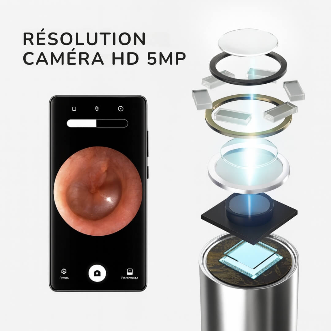 Visualisez en temps réel l’intérieur de votre oreille grâce à la caméra HD 5MP pour un contrôle total et sécurisé.
