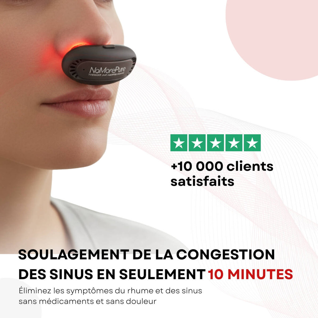 Pas d’inquiétude ! NoMore, propulsé par la thérapie avancée par lumière rouge, est votre solution rapide et efficace pour soulager le rhume et la sinusite.