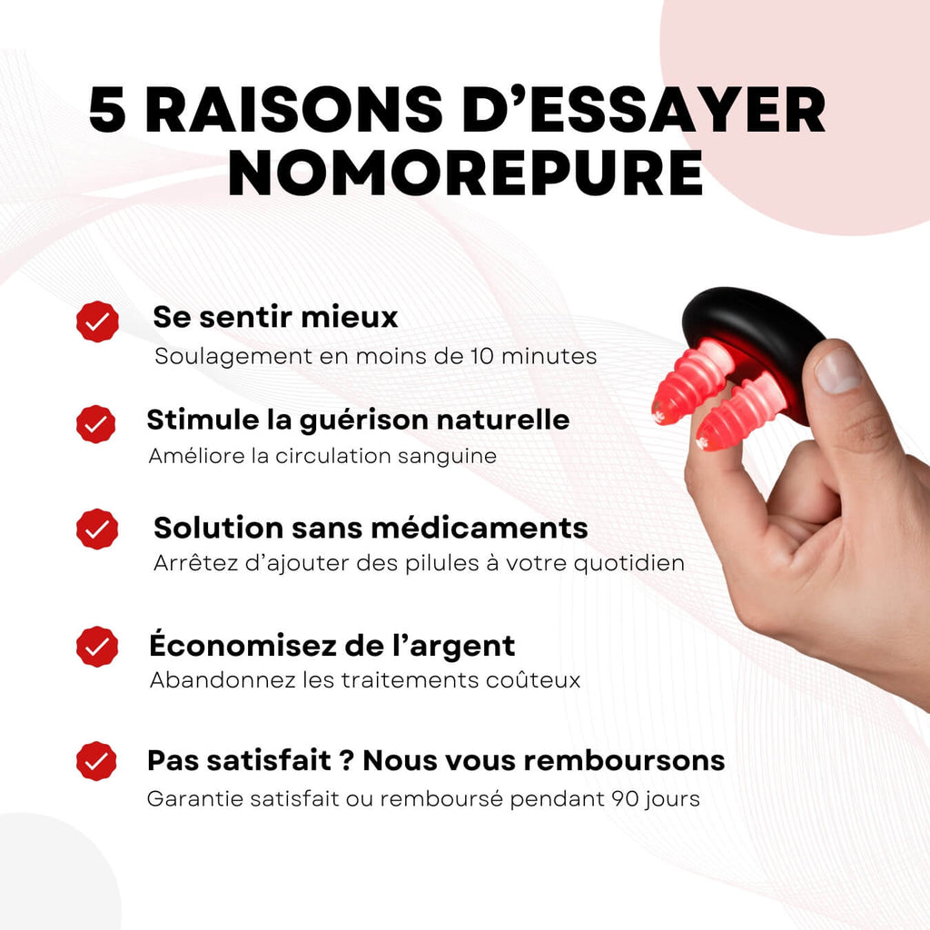 En résumé, NoMore Pure Air exploite la puissance de la lumière rouge pour traiter la cause des symptômes persistants du rhume, offrant à la fois un soulagement immédiat et des bénéfices durables.